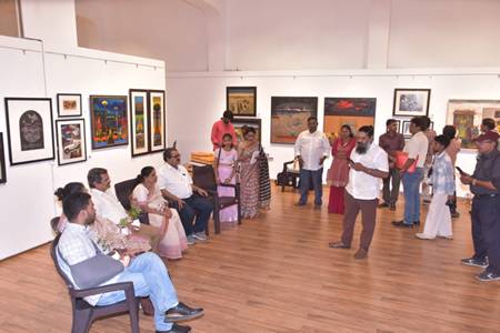 This show was inaugurated on 11th November 2025 by Honourable Guests Mr. Anant Nikam(Veteran print maker, artist and former HOD all department of Sir J.J. School of Arts), Mr. Gourmoni Das(Director & Founder of Nine Fish Gallery and Dot Line Space Foundation), Ms. Ranjitha S – Director & Founder of JMS Mani studio daughter of JMS Mani, Mr. Darshan Kumar YU – Curator(muesmuseologist), artist & Thinker, Sushma Sabnis – Art writer & curator among others.